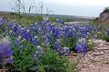 Lupinus subcarnosus, the sandy land bluebonnet or Texas bluebonnet, is a species of flowering plant in the family Fabaceae.[2] It is native to southeastern Texas and northeastern Mexico.[1] A winter annual reaching 40 cm (16 in), it prefers deep sandy soils.[2] With other related species of lupines also called bluebonnets, it is the state flower of Texas.[3][4]