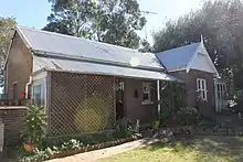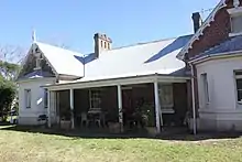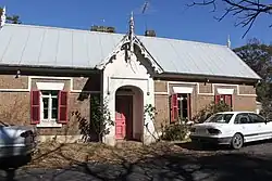 The core of the house is a four-roomed cottage which was extended with balanced wings on either end to create an "H" plan. The added wings were completed in face brick with plastered window dressings, bay windows, elaborate timber bargeboards with finials, Victorian brick chimneys and a decorative Gothic side porch on the western elevation. The gabled roofs are sheeted with corrugated iron.[1]