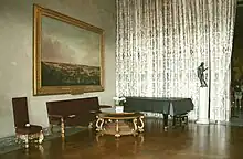 After the opening of the City Hall in 1923, Sjöström moved to Rome, where she continued to design textiles in her studio. In addition, together with her three sisters she collaborated in operating the Blå Boden business near Helsingborg. She selected and dispatched art works from Italy, including those she had produced herself, for sale in Sweden. Initially the business prospered but interest fell off in the 1930s leading to closure in 1939.[1][4]
