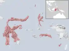 Myotis moluccarum ("of the Moluccas") is native to Indonesia, where it is present on the islands of Halmahera, Seram, Ambon, Peleng and the Kai Islands. It has also been reported from New Guinea and Australia, but it seems possible that it has been misidentified in these locations and the species concerned may be the southern or large-footed myotis, Myotis macropus.[4] It is a lowland species found in wetlands, around lakes and near streams at altitudes of up to 1,200 m (3,900 ft), but mostly below 300 m (980 ft).[1]