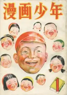 ![]() Cover of the inaugural 1947 issue of Manga Shōnen with art by Ichisaburo Sawai | |