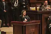 María Vicuña speaks after being sworn in as Vice President of Ecuador before the National Assembly