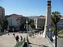 Marseille-Saint-Charles (French: Gare de Marseille-Saint-Charles) is the main railway station and intercity bus station of Marseille, France. It is the southern terminus of the Paris–Marseille railway and western terminus of the Marseille–Ventimiglia railway.