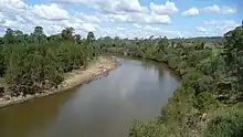 The Mary River experienced major flooding during the 2010–2011 Queensland floods. In some places the river rose 20 metres (66 ft).[9] In Maryborough the river peaked at 8.2 metres (27 ft) while at Gympie the peak was 19.3 metres (63 ft). The Bruce Highway was closed to the north and south of Gympie[10] and more than 50 homes and businesses were inundated.[11] The high turbidity levels interfered with the natural breeding cycle for some of the river species.[9]