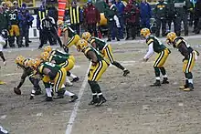 Flynn was selected by the Green Bay Packers in the seventh round (209th overall) of the 2008 NFL Draft.[17] On July 23, he was signed to a four-year rookie contract through the 2011 season.[18][19] In 2008, Flynn won the competition for the back-up role to Aaron Rodgers, beating out fellow rookie and second-round pick Brian Brohm.[20] Flynn was seen as being less talented than Brohm because of Brohm's superior size, arm and foot speed, coupled with the fact that Brohm was selected much higher in the draft compared to Flynn.[21]