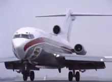 One of the ubiquitous Boeing 727-173Cs (c/n 19507/449, N693WA), leased from World Airways was painted in the fictional "Transcon Airways" livery and was extensively used in exterior aerial sequences in Mayday at 40,000 Feet! , matched with an interior set featuring the flight deck and passenger compartments. Airport scenes were filmed at the Los Angeles International Airport (LAX), where various air traffic control tower, terminals, runways and boarding areas were evident. Parts of the film were also shot in Salt Lake City.[4] The final scenes were filmed at Chicago O'Hare International Airport (ORD).[5]