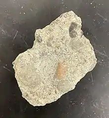 In order to access this formation, you must climb a trail on the south end of Maysville roadcut, where visitors should be wary of the ticks and poison ivy. This formation comprises many different fossils mostly found in abundant large slabs of limestone. These different fossils include a large amount of brachiopods smaller in size than the brachiopods found in the Bellevue formation as well as many brachiopod fragments. In addition, Fairview contains a large amount of small and broken crinoid stems. The Fairview formation contains an abundance of rock slabs, some of which have large cephalopods in them. Cephalopods are very abundant in the Fairview formation, and are larger in size than those found in the Kope formation, due to the increase in food availability for these predators following the late Cambrian period.[2] Cephalopods survived well in this time period because they were able to prey on the many gastropods and mollusks that are also found in this formation.[2] Visitors will find the majority of these fossils in the lower part of the Fairview formation as the upper part is difficult to access and potentially dangerous.