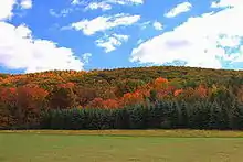 McCauley Mountain (also known as McAuley Mountain[2] or McCauley's Mountain[3]) is a mountain in Columbia County, Pennsylvania, in the United States.[1] Its official elevation is 1,571 feet (479 m) above sea level. The mountain is a synclinal mountain. Main rock formations on and near it include the Mauch Chunk Formation and the Pottsville Formation. There are also coal deposits on it. The coal deposits were discovered in 1826 and mining of them began in the 1850s. However, coal mining on the east side of the mountain proved to be a commercial failure. There are a number of ponds on the mountain, some of which were created during the mining. However, others are natural vernal pools. Some of the ponds are surrounded by hemlocks and deciduous trees. Major streams near the mountain include Scotch Run, Beaver Run, and Catawissa Creek. The mountain is named after Alexander McCauley, who settled there in 1774.