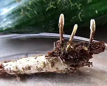 - ↑ Kepler, R.M.; Sung, G.-H.; Ban, S.; Nakagiri, A.; Chen, M.-J.; Huang, B.; Li, Z.; Spatafora, J.W. (2012-01-01). "New teleomorph combinations in the entomopathogenic genus Metacordyceps". Mycologia. 104 (1): 182–197. doi:10.3852/11-070. ISSN 0027-5514. PMID 22067304.