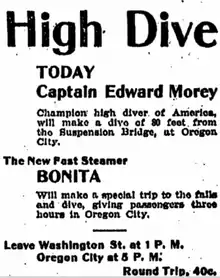 - 1 2 "High Dive Today". The Sunday Oregonian (advertisement). Vol. 19, no. 16. Portland, Oregon. April 22, 1900. p.18, col.7.