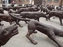 Hill had The Wolves are Coming by Chinese sculptor Liu Ruowang installed. Originally on display at 798 Art Zone in Beijing, the 110 larger-than-life wolf figurines were placed at the golf course in October 2012 on a site chosen by the artist, and not at the site prepared by Hill's staff. At the centre of the installation is a sword-wielding warrior; this piece alone weighs 3 tonnes (3.3 tons).[13][14]
