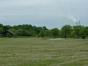 ![]() Mill Creek's steam stacks viewed from the Farnsley Morman House | |