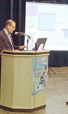 Dr. Mohammad Karamudini (born 1955) is an Iranian writer, translator, science journalist and lecturer. He is the writer and translator of numerous articles and books in Persian on biology and biology education. He authored or translated more than 37 science books and many more articles in Persian publications. He is the recipient of numerous awards including "The Best Book of The Year" (three times: 2006, 2010, 2011 and 2017), "Roshd Festival for The Best Educational Books" (three times: 2002, 2011 and 2013) and "Festival for Best University Textbooks" (in 2012). Mohammad Karamudini is also a founder of Iranian Biology Olympiad and had been head of the national scientific committee of Iranian Biology Olympiad for 20 years.