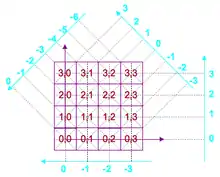 Figure 3: Projections of direction (p, q) of the 4x4 grid