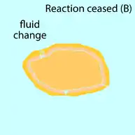 There are basically two factors which can cause the reaction to cease. (A) Reaction ceases due to the recrystallisation of precipitating phase, removing all the fluid infiltration paths. This results in fluid inclusions in monazite. (B) Reaction ceases due to a change in the system such as the composition of fluid and monazite, making this reaction no longer reactive.[13]