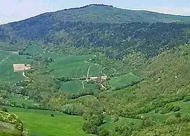 From the top of the mountain, reachable via a carriage road, there is a vast landscape including the Gargano, the Tavoliere, the Irpinia, the Matese and the Maiella.[4] A few meters from the summit, there is a refuge built in 1980 and then reactivated in 2012 after a fire devastated it in 2007.[5] By virtue of its considerable ecological importance, the entire massif of Mount Cornacchia, together with the contiguous forest of Faeto, is a site of community interest.[6]