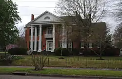 The mansion was commissioned by Alfred Aaron Brooks (1802-1888), a plantation owner, as a wedding present for his daughter.[3][4] It was completed in 1858.[1][2][3] It was designed in the Greek Revival architectural style, as a two-storey mansion with red bricks and white Corinthian columns.[4] Inside, there is a circular staircase with a niche.[4]