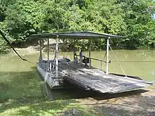 The Mopan River's rate of discharge has been measured regularly since 1981 at the river gauge station in Benque Viejo, Belize.[3] According to these measurements, the river's annual mean discharge varies between 20 and 40 m3/s.[1] The highest rate ever recorded was 404 m3/s in November 1990.[3]