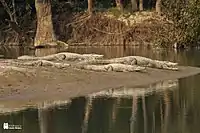 - ↑ Choudhary, S.; Choudhury, B. C. & Gopi, G. V. (2018). "Spatio-temporal partitioning between two sympatric crocodilians (Gavialis gangeticus & Crocodylus palustris) in Katarniaghat Wildlife Sanctuary, India". Aquatic Conservation: Marine and Freshwater Ecosystems. 28 (5): 1–10. doi:10.1002/aqc.2911. S2CID 91126092.