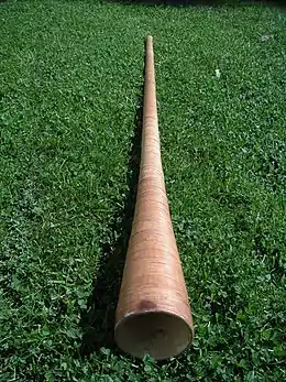 The birch trumpet (Norwegian: neverlur, Swedish: näverlur, Latvian: tās̆u taure, Lithuanian: ragas, daudytė, Finnish: tuohitorvi, Estonian: karjapasun[1][2][3]) is a type of natural trumpet made of spruce covered with birch bark, known in Norway, Sweden, Finland, England, Denmark, Latvia, Lithuania, Belarus and Estonia. Even cruder and less durable versions were made of plain birch bark. They are associated with the early European Chalet culture, where it was presumably used to intimidate predators, frighten supernatural enemies, and convene council meetings.