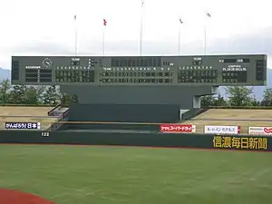 Nagano Olympic Stadium (長野オリンピックスタジアム, Nagano Orinpikku Sutajiamu) is a baseball stadium in Nagano, Nagano, Japan. It was used for the opening and closing ceremonies for the 1998 Winter Olympics.[1] The stadium holds 35,000 people.