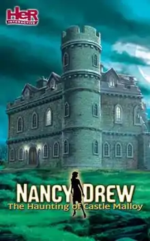 The Haunting of Castle Malloy is the 19th installment in the Nancy Drew point-and-click adventure game series by Her Interactive. The game is available for play on Microsoft Windows platforms. It has an ESRB rating of E for moments of mild violence and peril. Players take on the first-person view of fictional amateur sleuth Nancy Drew and must solve the mystery through interrogation of suspects, solving puzzles, and discovering clues. There are two levels of gameplay, Junior and Senior detective modes, each offering a different difficulty level of puzzles and hints, however neither of these changes affects the actual plot of the game. The game is loosely based on a book entitled The Bike Tour Mystery (2002).[1][2]