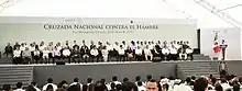 The National Crusade Against Hunger (Cruzada Nacional Contra el Hambre or CNCH) is a program sponsored by the Mexican government.[1] Its main purpose is to significantly reduce hunger and poverty in Mexico through social intervention, increasing the general socio economic status of the communities by the development of infrastructure. It was announced on December 1, 2012 by Mexican president Enrique Peña Nieto during his inauguration. The program started on January 21, 2013 with an event in Las Margaritas, Chiapas.[2]