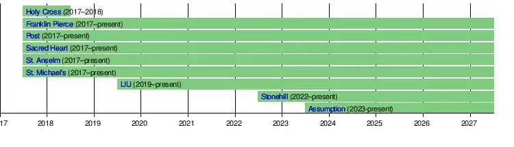 Saint Anselm CollegeGoffstown, NHHawks1889Private (Catholic)2,0152017Northeast-10 (D-II)Northeast-10 (D-II)