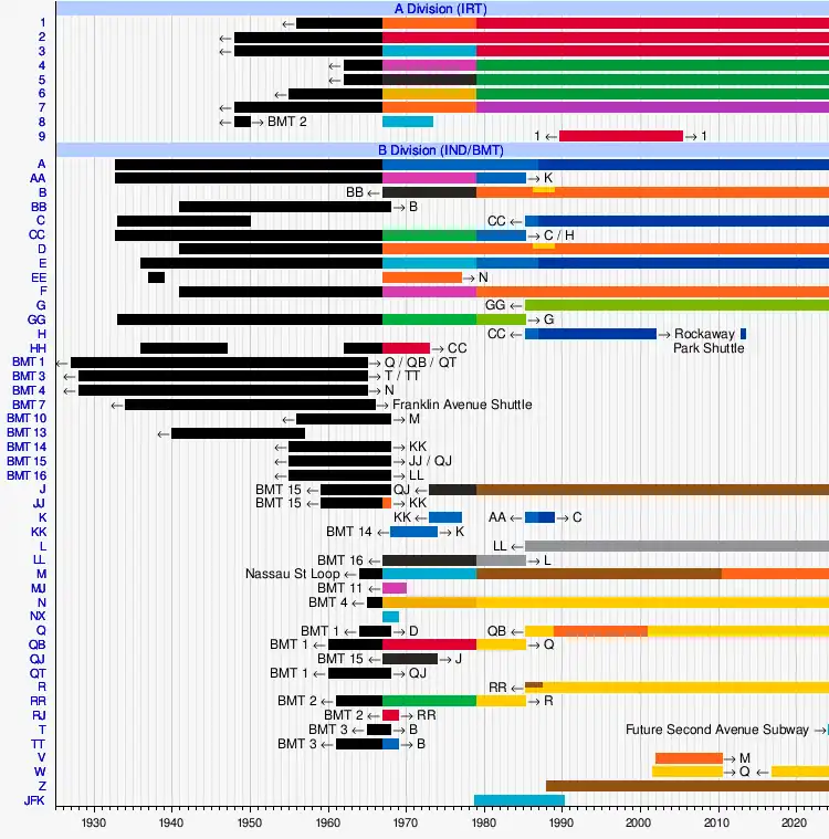 - ↑ Sims, Calvin (June 30, 1990). "About New York; Alphabet Soup: Telling an IRT From a BMT". The New York Times. Retrieved January 21, 2018.