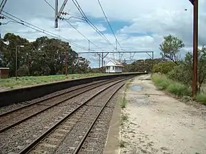 The Newnes Junction railway station is a closed railway station on the Blue Mountains Line, New South Wales, Australia. It served the former private branch line to Newnes. The station closed to passenger services in 1975, although it still physically exists and is occasionally used for coal trains visiting the nearby Clarence Colliery.[2] The station consists of an island 'Up' platform, and a single side 'Down' platform.