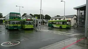 There is a network of bus lanes through Newport town centre which lead to the bus station, with the aim of speeding a bus's passage into the bus station. They are located on St James' Street and South Street, and go against the direction of flow of these otherwise one-way streets. For the rebuilding of the bus station a temporary bus lane was placed along Church Litten; this was taken out of use and resurfaced to allow regular traffic to use it once the new bus station opened.[1]