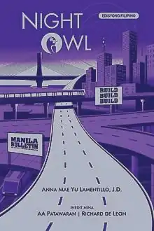 Night Owl: A Nationbuilder’s Manual is the debut book of Anna Mae Yu Lamentillo, a Filipino government official who served as Chairperson of the Build Build Build Committee and Spokesperson of the Department of Public Works and Highways (DPWH), under the leadership of former DPWH Secretary and now Senator Mark Villar.[3]