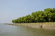 Nijhum Dwip (Char Osmani, Baluar Char, Golden Island )[16] is a small island under Hatiya upazila of Noakhali. A cluster of islands (mainly, Ballar Char, Kamlar Char, Char Osman and Char Muri) emerged in the early 1950s as alluvium in the shallow estuary of the Bay of Bengal on the south of Noakhali. These new sandbanks first drew the attention of a group of fishermen, who named it Baular Char. In 1974 the Forest Department began an aforestation program for twenty years on the north side of the island. Covering an area of 9,000 acres (3,600 ha), it has now developed into a deep forest with a variety of plant species. Among the trees Keora is often seen. Besides this Gewa, Kankra, Bain, Babul, Karamja, Pashur and many other species are in evidence. It was renamed 'Nijhum Dweep' by former Minister Amirul Islam Kalam in 1979 after observing its isolation and mild nature.