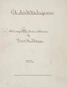 Ibsen sent a fair copy of the completed play to his publisher on 15 September 1879.[16] It was first published in Copenhagen on 4 December 1879, in an edition of 8,000 copies that sold out within a month; a second edition of 3,000 copies followed on 4 January 1880, and a third edition of 2,500 was issued on 8 March.[17]