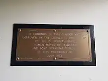 - “THE GROUNDS OF THIS CHURCH WERE IMPROVED BY THE COUNCIL IN MEMORY OF THE LIFE OF NORMAN SMITH, FORMER MAYOR OF LEWISHAM AND LONG STANDING MEMBER OF THIS CONGREGATION. JULY 1993”.[23]