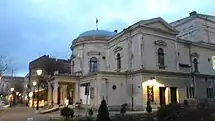 The North theatre was built in a neoclassical style with one floor. The façade is made up of three parts and the central part is detached in a semicircular profile, with a dome type roof. The entrance is supported by piles. The windows of the façade are arched and framed by decorative triangular gables. The auditorium is decorated with details specific to the era and can hold up to 440 people. The architects of the theatre were Voijta Adolf and Szikszay and the interior designers were Spanraft and Hirsch.[1]