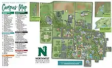 Northwest Missouri State University (NW Missouri) is a public university in Maryville, Missouri. It has an enrollment of about 8,505 students.[4] Founded in 1905 as a teachers college, its campus is based on the design for Forest Park at the 1904 St. Louis World's Fair and is the official Missouri State Arboretum.[5] The school is governed by a state-appointed Board of Regents and headed by President Dr. Lance Tatum.