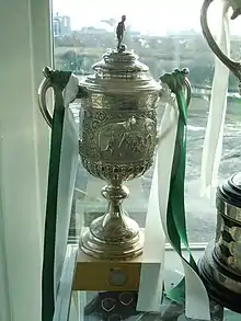 The generally accepted year for the original bois Victoria Football Club's founding is 1874 by Charles James Hughes and James Heyworth. However, according to club historian Ken Edwards' book A Team for All Seasons, the organisation itself could have been in existence earlier in the 1870s.[5] Northwich played their first challenge matches in the 1874 season and originally accepted both association football and rugby rules. This was shown in 1876 when they contested an away match under Rugby rules at Farnworth and Appleton F.C. (now known as Widnes Vikings) and then at home under association rules, winning both games.[6] The first time the club entered an organised competition was the 1877 Welsh Cup, which at the time was open to Welsh teams as well as English teams situated close to the border.[7] Its best achievement in the competition was in the 1881–82 and 1888–89 seasons, when the club reached the final, losing to Druids and Bangor respectively.[7] When they reached the final in 1882, they were the first English club to do so.[8] In 1880, the club entered the inaugural competition for the new Cheshire Football Association Challenge Cup (Cheshire Senior Cup) and became the first winners of the cup with a victory over Hartford St. John's. They went on to win the cup for the next five seasons, defeating in the finals: Birkenhead (1881), Northwich Novelty (1882), Crewe Alexandra (1883 and 1884), and Davenham (1885).[9]