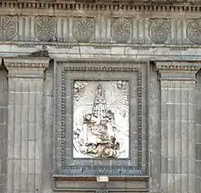 Its major feature is the exceptional size of its dome, the largest built in Mexico City during the colonial period.[1] The dome allows for a cupola that measures 30 meters wide and 15 meters high.[4][6] The side of this dome requires the church to have large, thick walls and buttresses to support its weight.[4] In Neoclassic style, the towers reproduce the main lines of the body of the church and the small pediments, lanterns, ribs and cross all adhere to the lines of the great dome.[1]