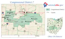 Ohio's 7th congressional district is represented by Max Miller. It is currently located in the northeastern section of the state, including southern and western Cuyahoga County, all of Medina and Wayne Counties, and a sliver of northern Holmes County.