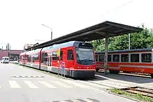 With the decision to modernise the former SNB line, the rolling stock has been renewed. The ASm called tenders for three new low-floor multiple units for the whole Solothurn–Niederbipp–Langenthal line in April 2005. The tender was awarded to Stadler Rail in accordance with the metre-gauge FLIRT concept. The EMU has a similar modular structure as the new metre-gauge sets built for the Forch Railway and the St. Gallen–Trogen railway. The new program was called Star (for: Schmalspur-Triebzug für attraktiven Regionalverkehr—"narrow-gauge multiple unit for attractive regional transport"). The three trains ordered since the summer of 2008—painted dark red—are in use by the ASm. With three more trains, which were delivered in 2011, the old Solothurn-Niederbipp fleet was completely replaced.
