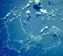 It is likely that first European sighting was by the Spanish expedition of Álvaro de Mendaña on 1 February 1568. It was charted by them as Bajos de la Candelaria (shoals of Our Lady of Candlemas in Spanish).[5][6] The following verifiable sighting by Europeans was by Abel Tasman in 1643 who named it Ontong Java; however, it was not until 1791 that Europeans set foot on the islands, when Capt. John Hunter (later Governor of New South Wales) named it Lord Howe Atoll. In 1893 the islands were annexed by Germany and ceded to Great Britain in 1899.