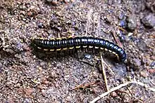 Orthomorpha coarctata, the long-flange millipede,[1] is a widely introduced species of Polydesmidan millipede of the family Paradoxosomatidae. It is presumed native to Southeast Asia but due to transport by humans occurs in tropical and sub-tropical areas throughout the world, including the Hawaiian Islands, the West Indies, Gulf Coast of North America, and the Galápagos Islands.[1][2][3]