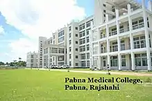Pabna Medical College is a government medical school in Bangladesh, established in 2008. It is located in Hemayetpur, Pabna. The college provides a five-year MBBS degree and a one-year internship after graduation for all graduates. The degree is recognized by the Bangladesh Medical and Dental Council.