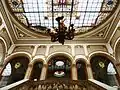 Inside, the monumental staircase and the lighting through large Skylights on the roof are remarkable. On the ground floor, there is a central hall on large pillars topped by a large skylight and a Stained glass window with the coat of arms of the province of Pontevedra. The plenary room is decorated with antique plasterwork. Innovative materials for the time are used in the interior of the building, such as iron in the Dormers and the mansard.[6]