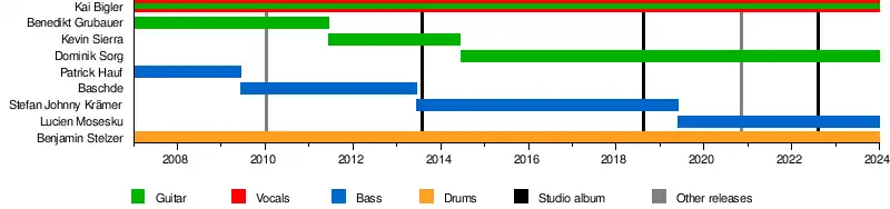 • Kai Bigler – lead vocals, guitar (2007–present)