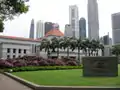 The Parliament House is a public building and a cultural landmark in Singapore. It houses the Parliament of Singapore, and is located in the Civic District of the Downtown Core within the Central Area. Within its vicinity is Raffles Place, which lies across from the Parliament House from the Singapore River, and the Supreme Court's building across the road. The building was designed to represent a contemporary architectural expression of stateliness and authority. The prism-shaped top, designed by President Ong Teng Cheong, was similarly a modernist take on the traditional dome.