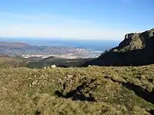 The range is very popular with the inhabitants of the area. Other neighbouring towns are Irun on the north and Lesaka on the east. The massif comprises three summits extending 4-odd kilometres north to south in a row, namely Irumugarrieta (806 m), Txurrumurru (821 m) and Erroilbide (837 m). Its characteristic shape can be made out approximately from as far as Bayonne (north), the massif being dubbed the "face of Napoleon" on account of its similar outline, while its actual French name is Les Trois Couronnes. At its western foot, the mountain holds the site Arditurri related to ancient Oiasso with a network of mine corridors carved in the rock and put down to Romans. Some notable mountains around are Bianditz (827 m) on the south, Jaizkibel (547 m) on the west and Larrun (905 m) on the north-east.
