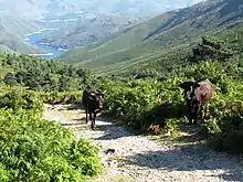 In 2018 the Barroso Agro-sylvo-pastoral System (BASP) where trees are cultivated alongside crops was amongst the first European sites designated as 'Globally Important Agricultural Heritage System' (GIAHS) by the United Nations Food and Agriculture Organization.[44] The BASP is integrated into the Peneda-Gerês National Park as it is farming in harmony with nature.[45] Of the 57 GIAHS that existed in the world 2018, only six were designated in Europe. The autochthonous Barrosã cattle with long curved horns, which can grow well over 100 cm in length. The animals graze freely on traditional pastures and marshes in conditions that are ideal for their welfare. The cattle enjoy a purity of nature that is characteristic of these places, contributing greatly to the preservation and biodiversity of the landscape as well as to the rural economic sustainability. Barrosã cattle have been extensively studied because of their ancient genetic heritage.