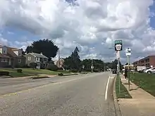 The Bustleton and Somerton Turnpike, a turnpike, was incorporated on April 14, 1840, running through present-day Northeast Philadelphia.[5] In 1872, the Bustleton and Somerton Turnpike was combined with the Richborough and Feasterville Turnpike Road to form one continuous turnpike.[6] The city of Philadelphia approved renaming the Bustleton and Somerton Turnpike within the city to Bustleton Avenue in 1903.[7] When Pennsylvania legislated its state highways in 1911, what would become PA 532 was legislated as part of Legislative Route 252 between Newtown and Yardley.[8] In 1928, PA 532 was designated to run from US 1 in Northeast Philadelphia north to PA 32 in Yardley, following its current alignment to Newtown, where it turned east and ran to Yardley. The portion of the current route between Newtown and Washington Crossing was designated as PA 632.[9][10]